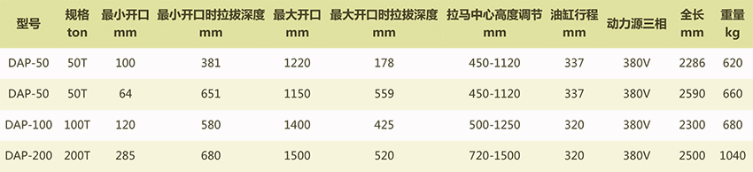 DAP全自動液壓拉馬選型表