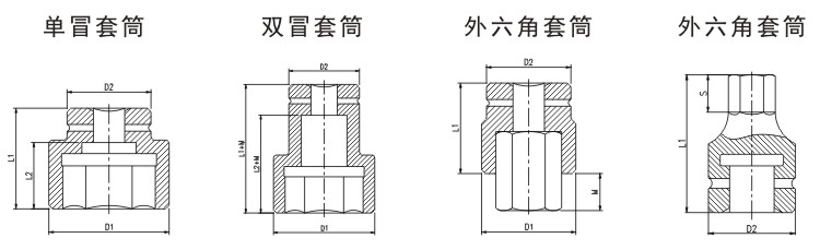 產品特點 鉻鉬鋼高強度套筒 高強度鉻鉬合金剛制造 采用標準熱處理工藝,安全可靠,經久耐用 標準為公制套筒尺寸,可定制英制套筒或各種非標套筒 重載套筒標準 DIN2121/2129