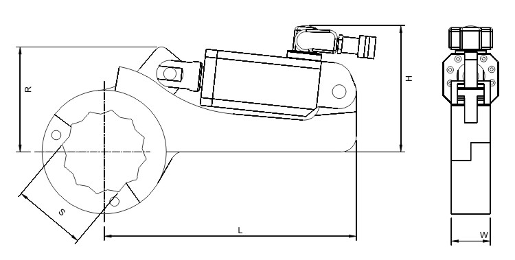 一般的液壓扳手無法工作,而“裂口”設計突破了傳統的空間限制,適用于各種螺母。