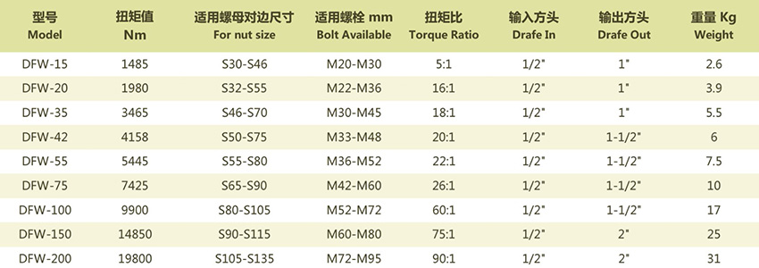 產品特點 適用于空間狹小螺母拆裝的施工場合,輕巧方便的手工操作 行星齒輪結構產生大扭矩輸出,反作用支角可360°任意調整 可互換不同規格的套筒,適用多種大直徑螺栓螺母 最小的工具直徑,最大的力矩輸出 反作用支腳可根據用戶實際工況加工定做 配合扭力扳手使用可獲得更高扭矩精度 應用行業 船舶工業、石油化工、風電、水電、熱電、礦山、機械、鋼廠、橡膠、管道等行業